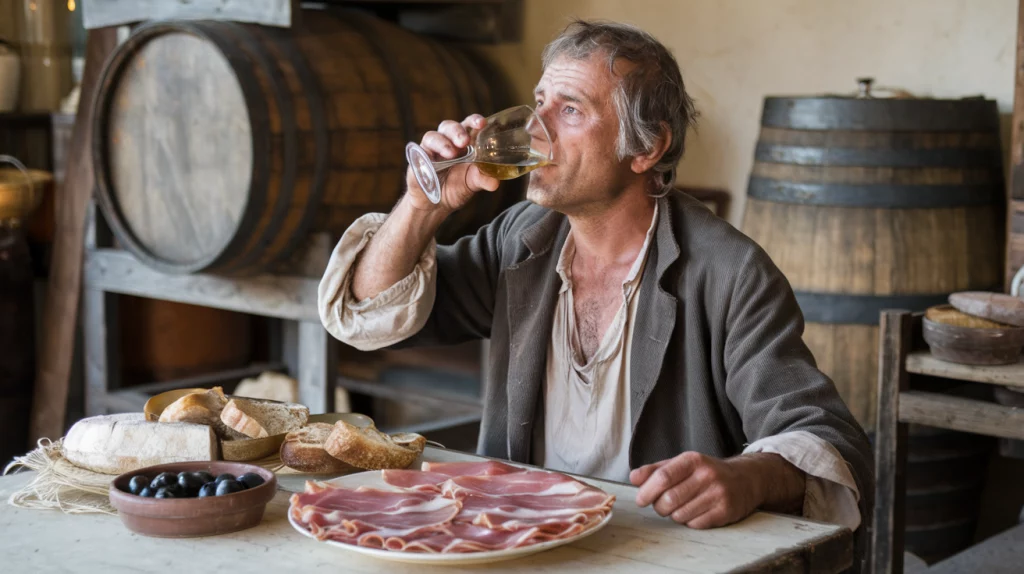 Sabemos que estos vinos eran conocidos por su alta graduación alcohólica, lo cual era común en los vinos del sur de España debido al clima cálido y soleado, que favorecía la producción de uvas con un alto contenido de azúcar, lo que se traducía en vinos más fuertes. Al ser mencionados en un contexto de embriaguez rápida, se puede inferir que estos vinos no eran ligeros o suaves, sino potentes y capaces de conservarse durante los viajes largos, lo que los hacía populares entre comerciantes y marineros.